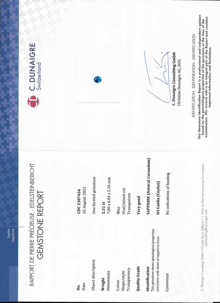 Blue Sapphire – Oval 2CT+ 2.32ct/st