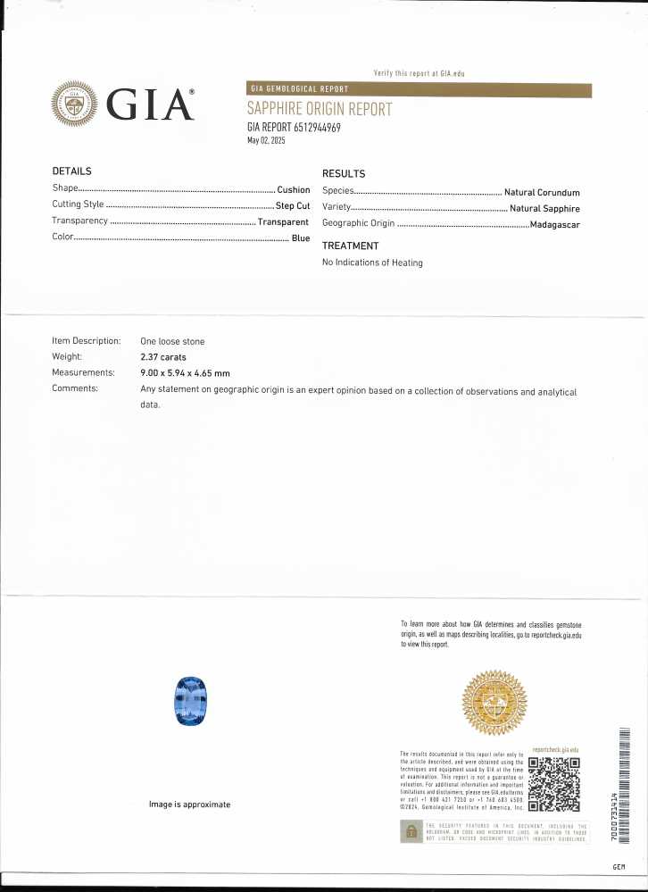 Blue Sapphire – Rectangular Cushion 2CT+ 2.37ct/st