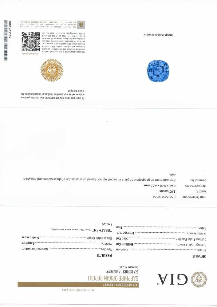 Blue Sapphire – Square (Antique) Cushion 3.5CT+ 3.97ct/st