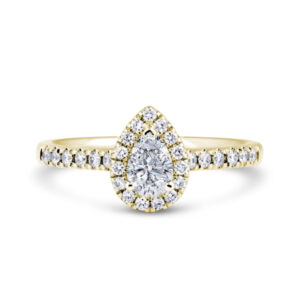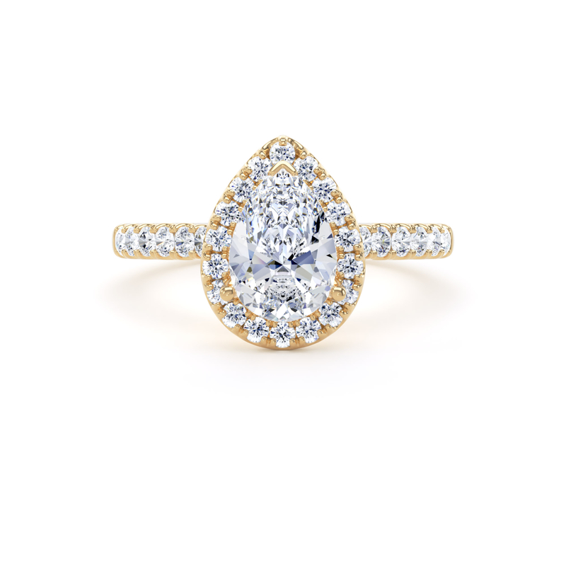 DHS01 Pear Cut Halo Engagement Ring in 18ct Yellow Gold