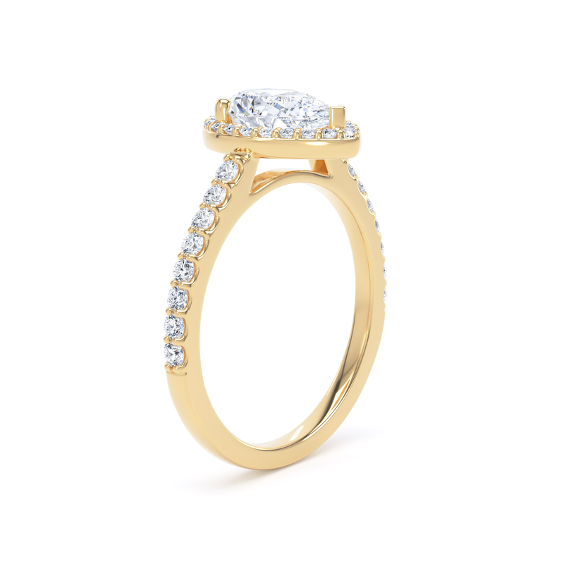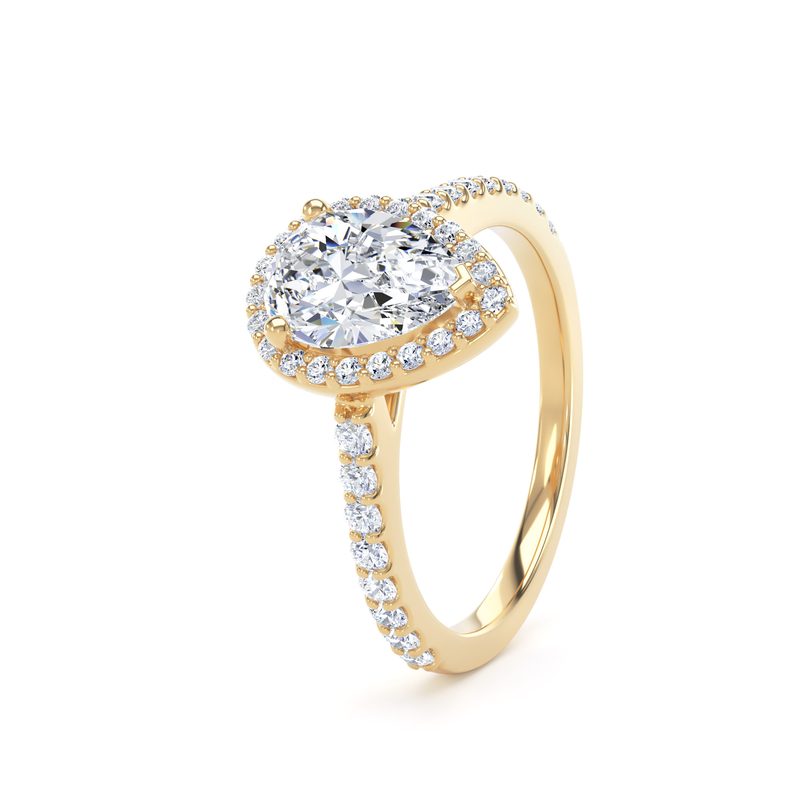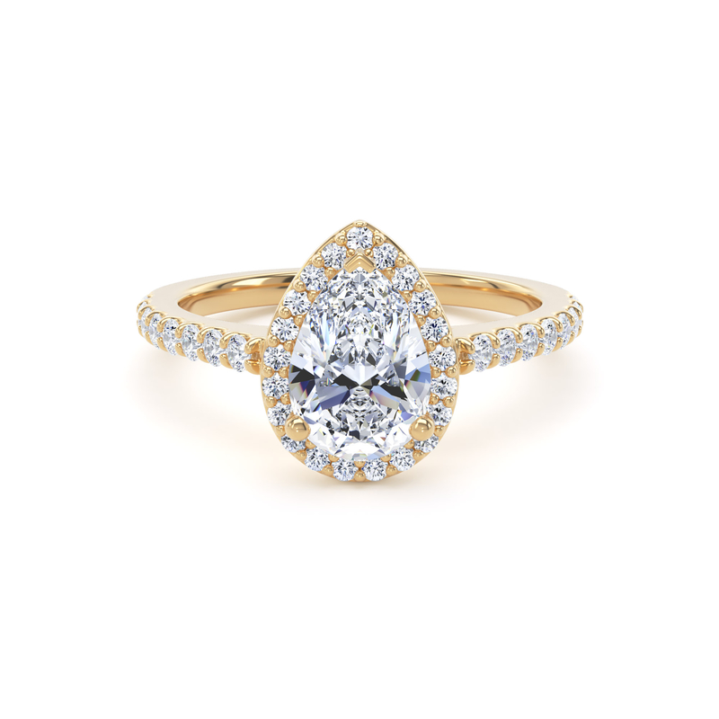 DHW01 Pear Cut Halo Engagement Ring in 18ct Yellow Gold
