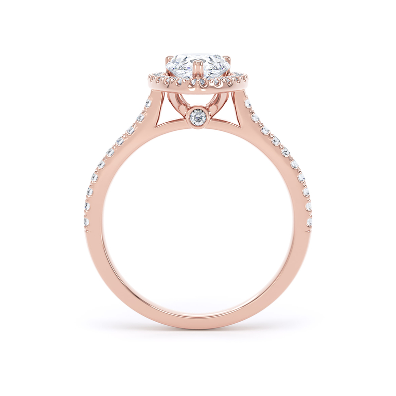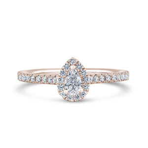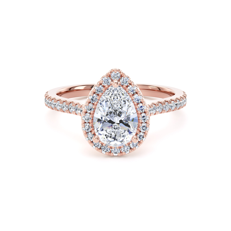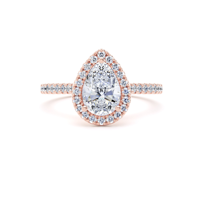 DHW02 Pear Cut Halo Engagement Ring in 18ct Rose Gold