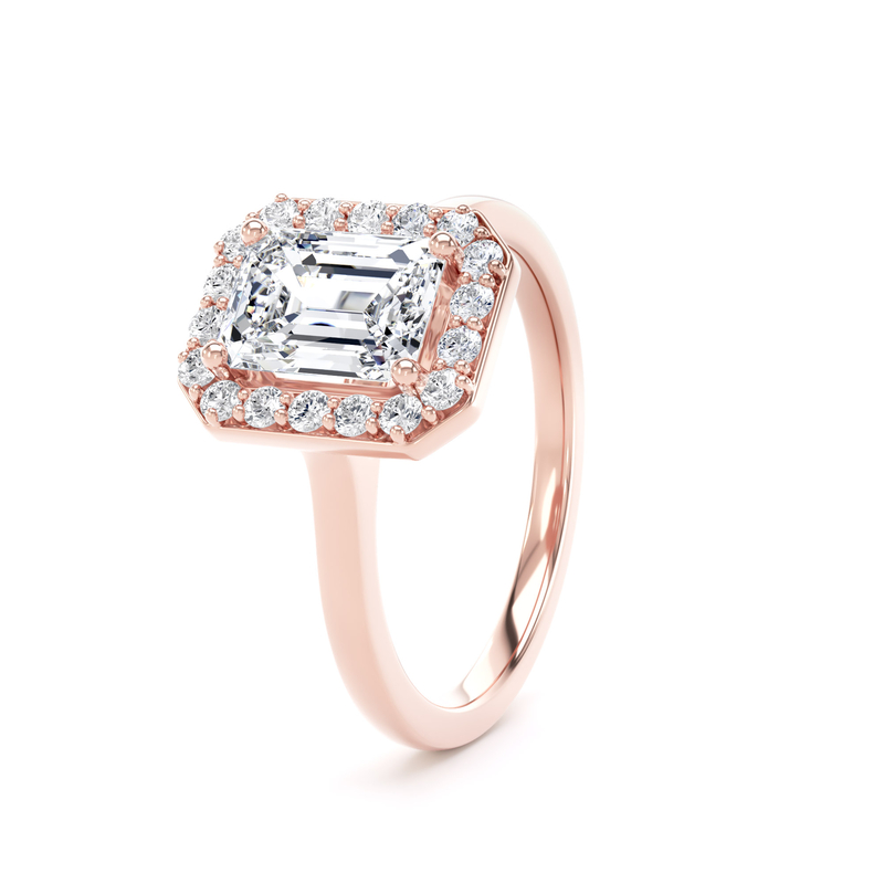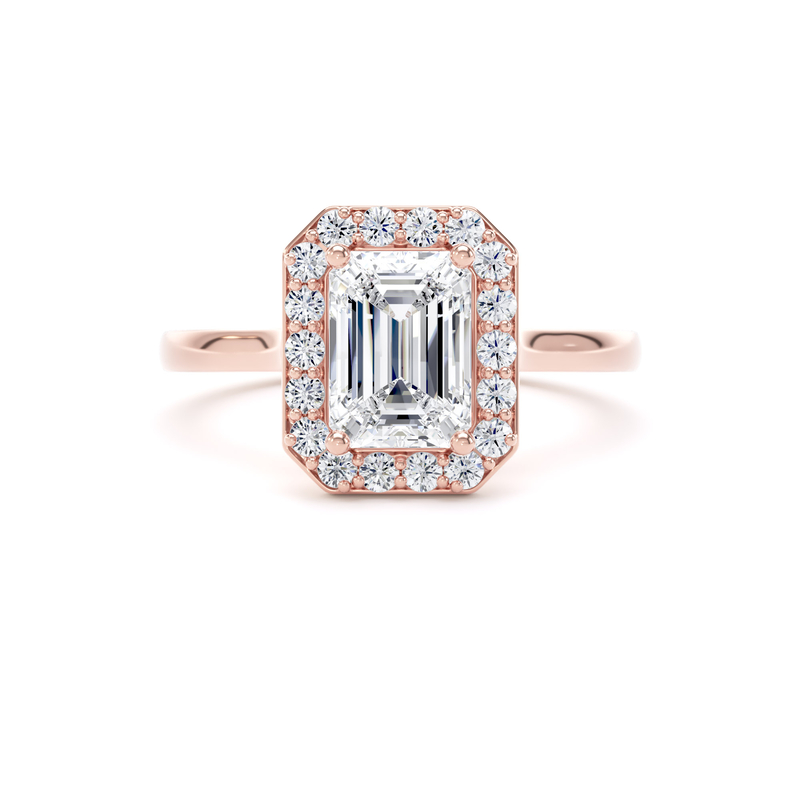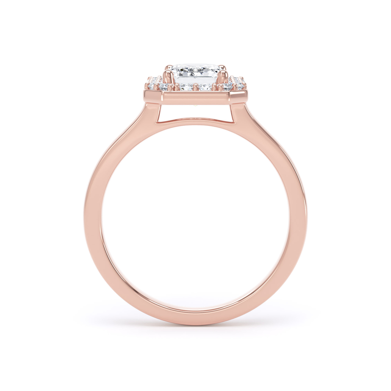 The Emerald Diamond Floating Cathedral Single Halo Engagement Ring in 18k Rose Gold.