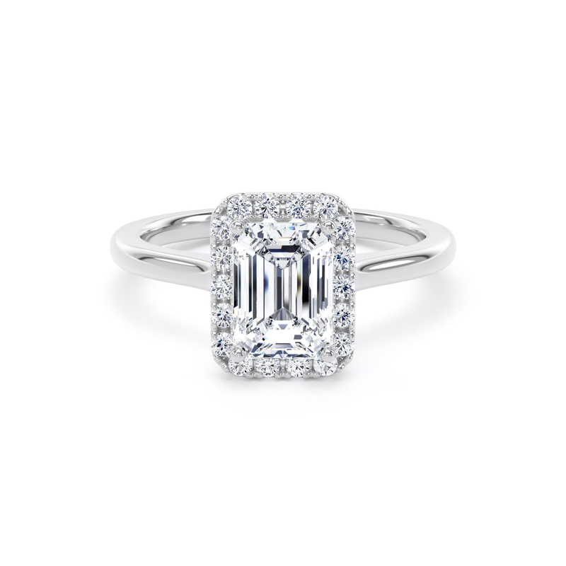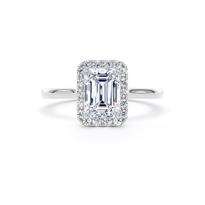 The Emerald Diamond Single Halo Cathedral Engagement Ring, Platinum.