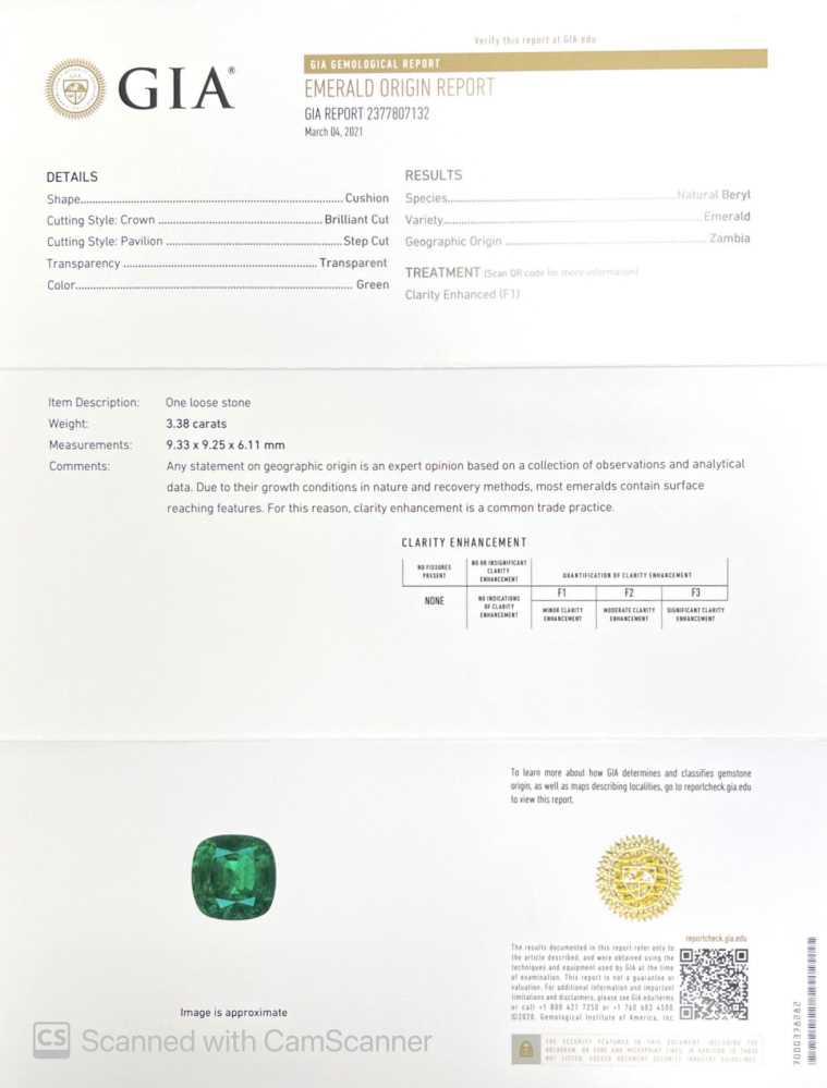 Emerald – Square (Antique) Cushion 3CT+ 3.38ct/st