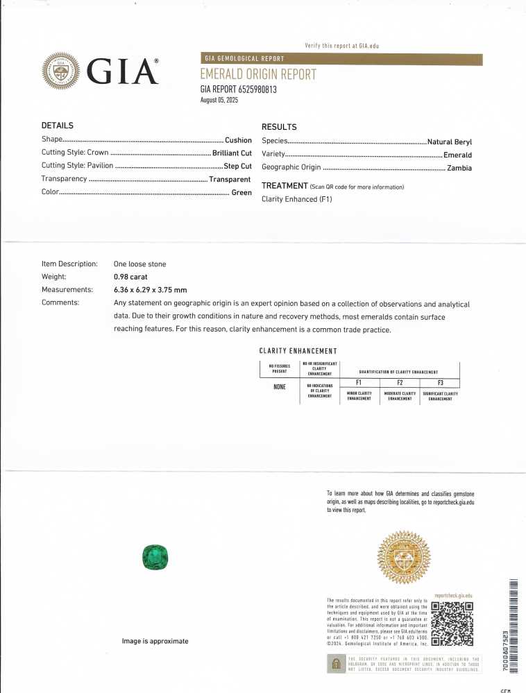Emerald – Square (Antique) Cushion 6.25mm 0.98ct/st