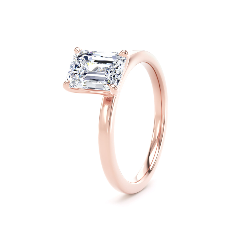 Solitaire Emerald Diamond Engagement Ring in 18k Rose Gold