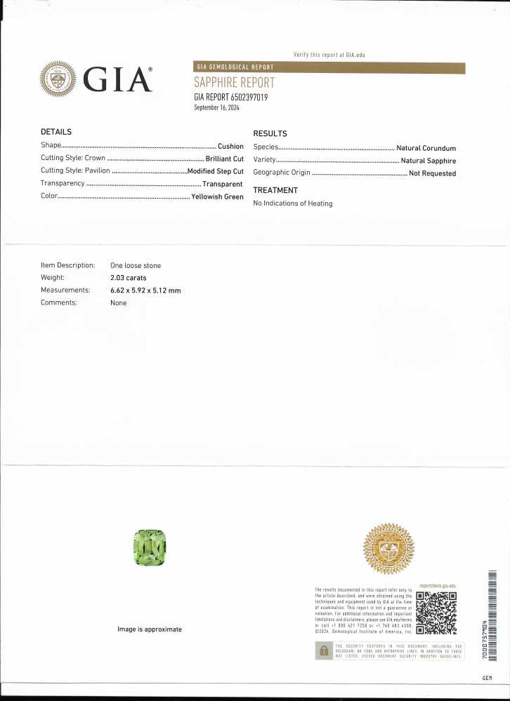 Green Sapphire – Cushion 2ct+ 2.03ct/st