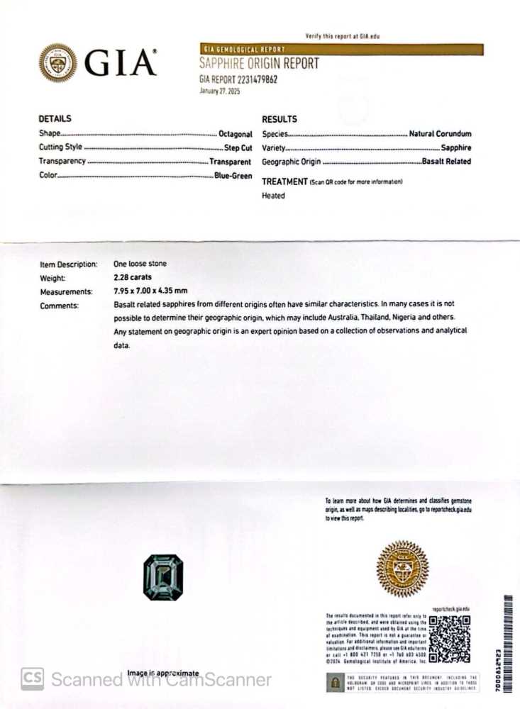 Green Sapphire – Octagon 2.5ct+ 2.28ct/st