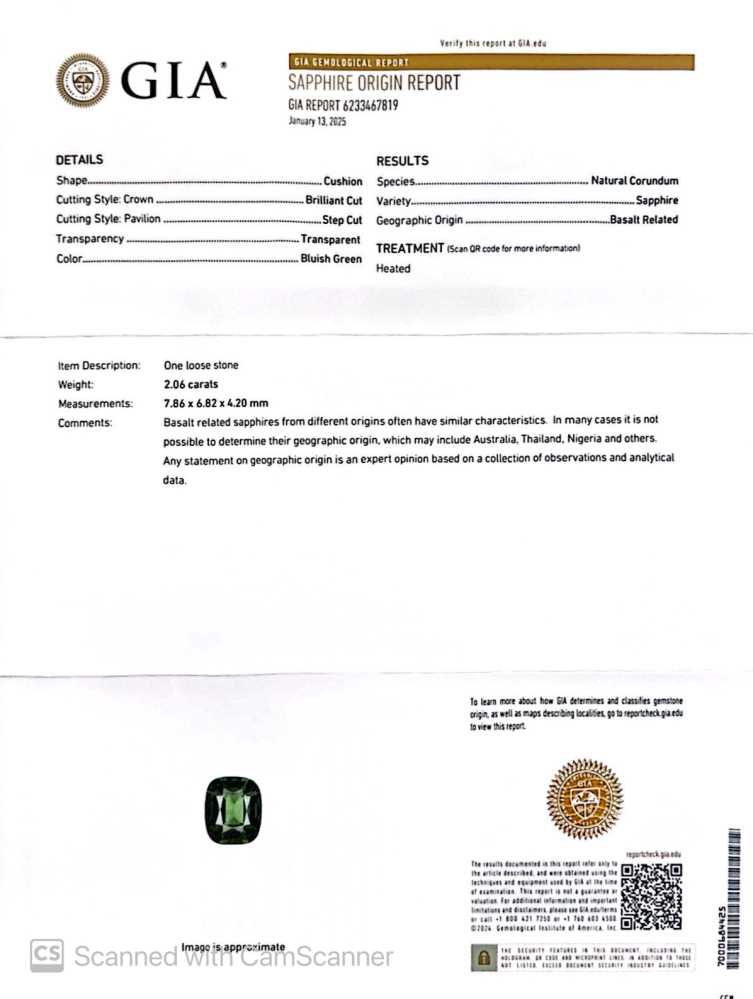 Green Sapphire – Rectangular Cushion 2ct+ 2.06ct/st