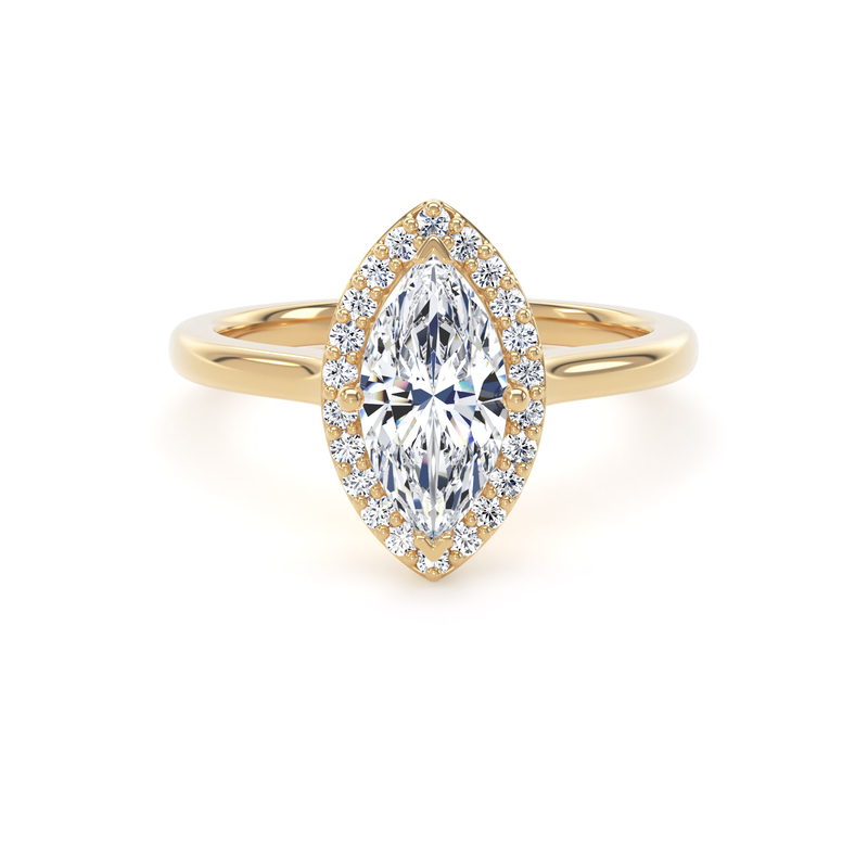 The Marquise Diamond Single Halo Ring in 18k Yellow Gold.