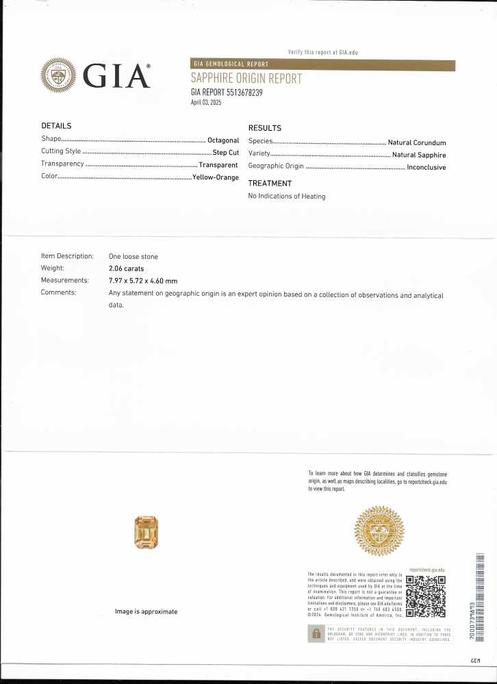 Orange Sapphire – Emerald Cut 2CT+ 2.06ct/st