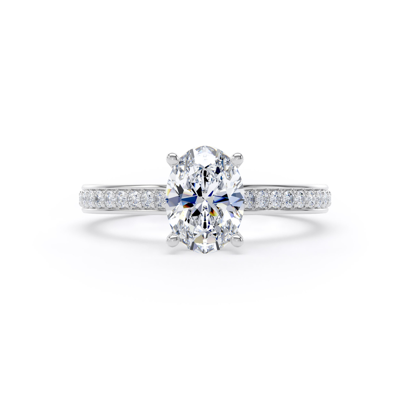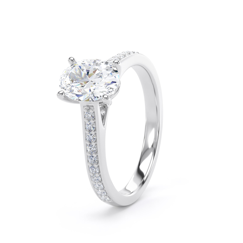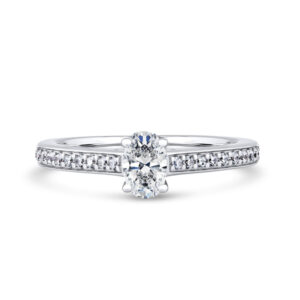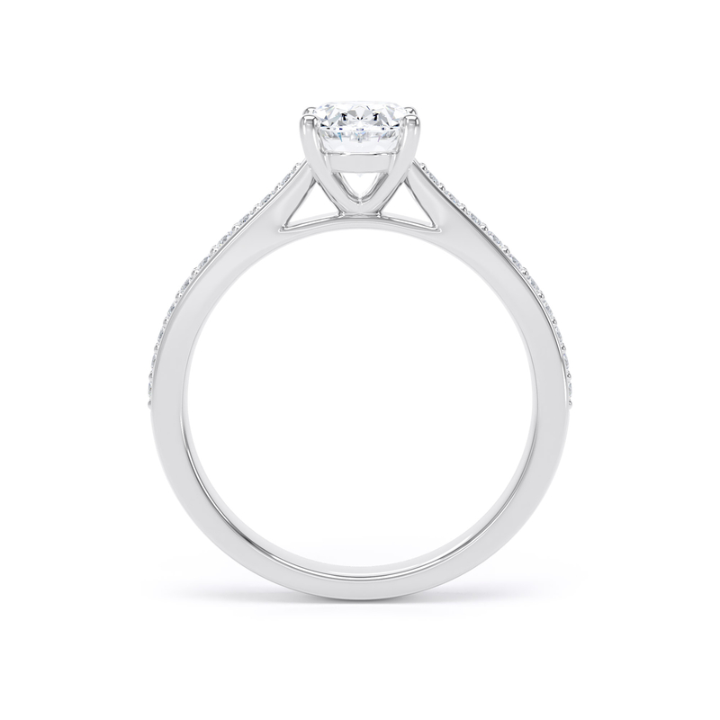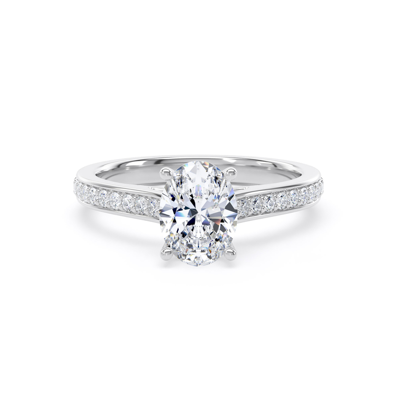 For an added layer of intricate sparkle, a shoulder set ring features a band gracefully adorned with smaller diamonds, leading the eye towards the magnificent centre stone. This elegant design choice enhances the overall brilliance of the ring, creating a continuous and captivating flow of light. Choose a shoulder set design for a timeless look that combines classic sophistication with an extra touch of glamou