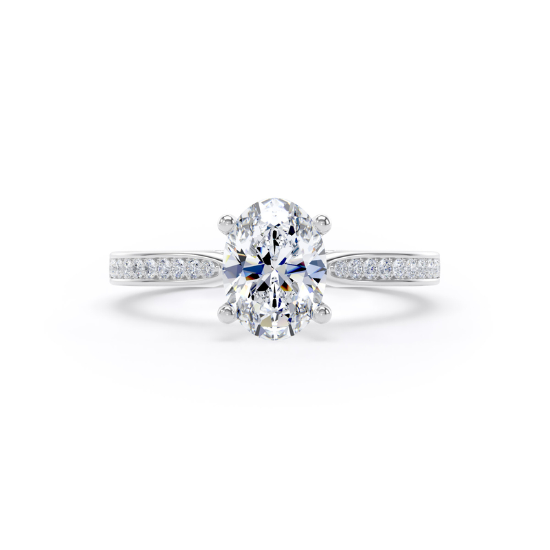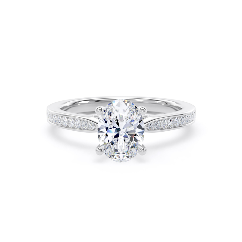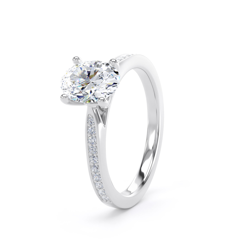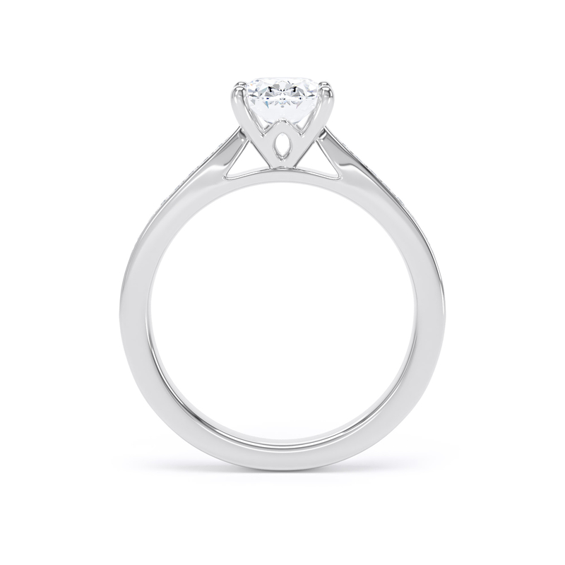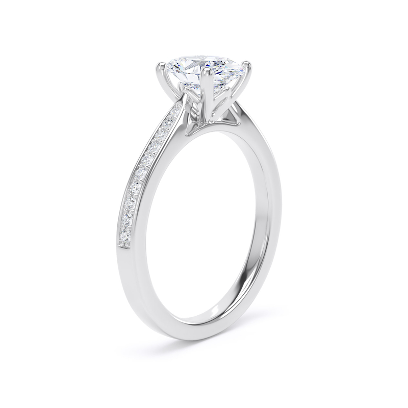 For an added layer of intricate sparkle, a shoulder set ring features a band gracefully adorned with smaller diamonds, leading the eye towards the magnificent centre stone. This elegant design choice enhances the overall brilliance of the ring, creating a continuous and captivating flow of light. Choose a shoulder set design for a timeless look that combines classic sophistication with an extra touch of glamou