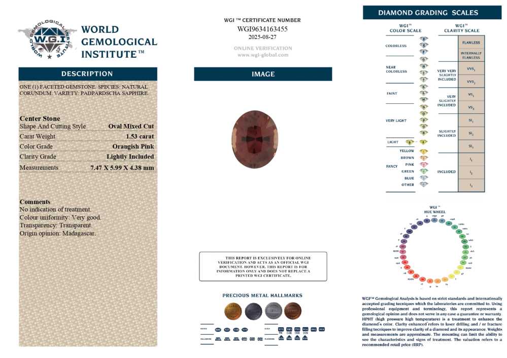 Padparadscha Sapphire – Oval 1.5CT+ 1.53ct/st