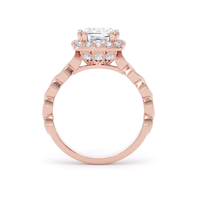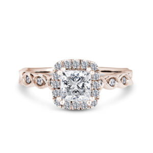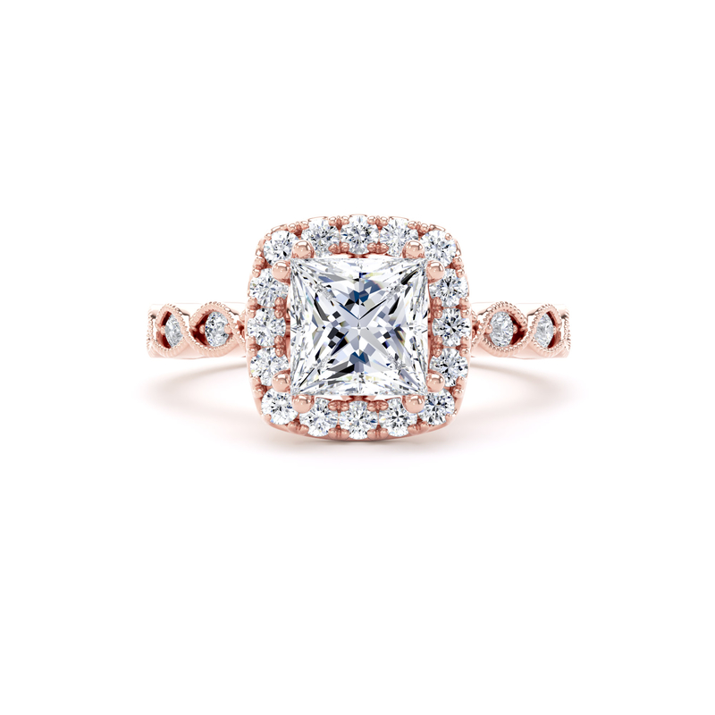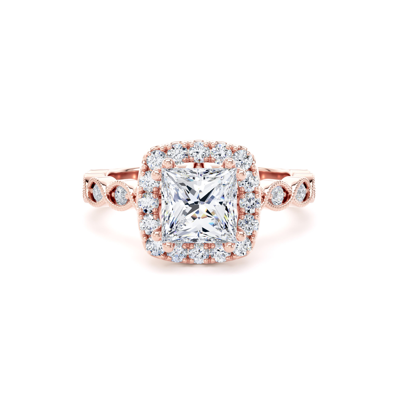 PHM01 Princess Cut Halo Engagement Ring in 18ct Rose Gold