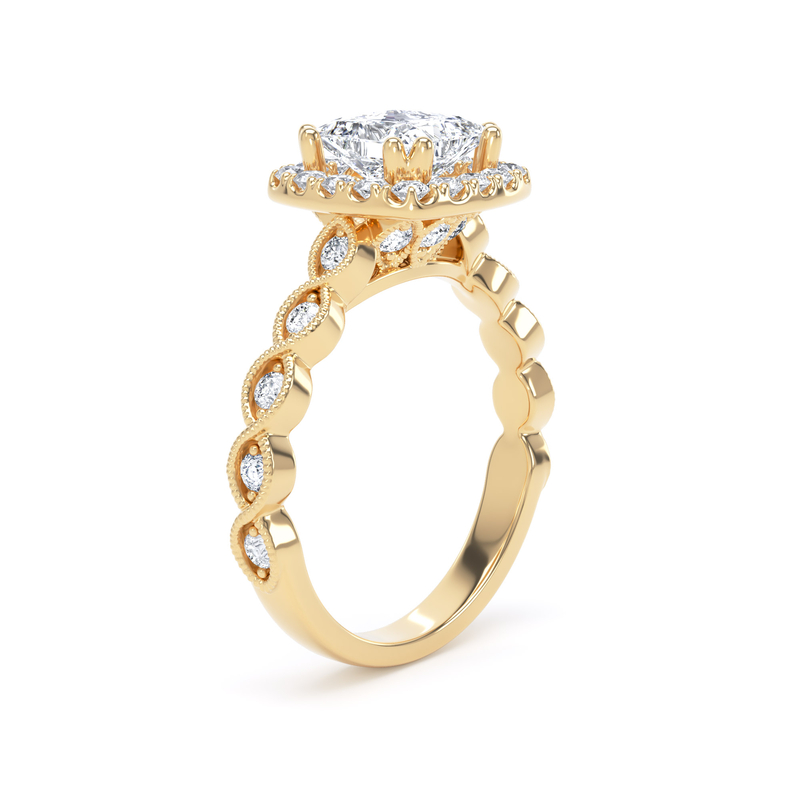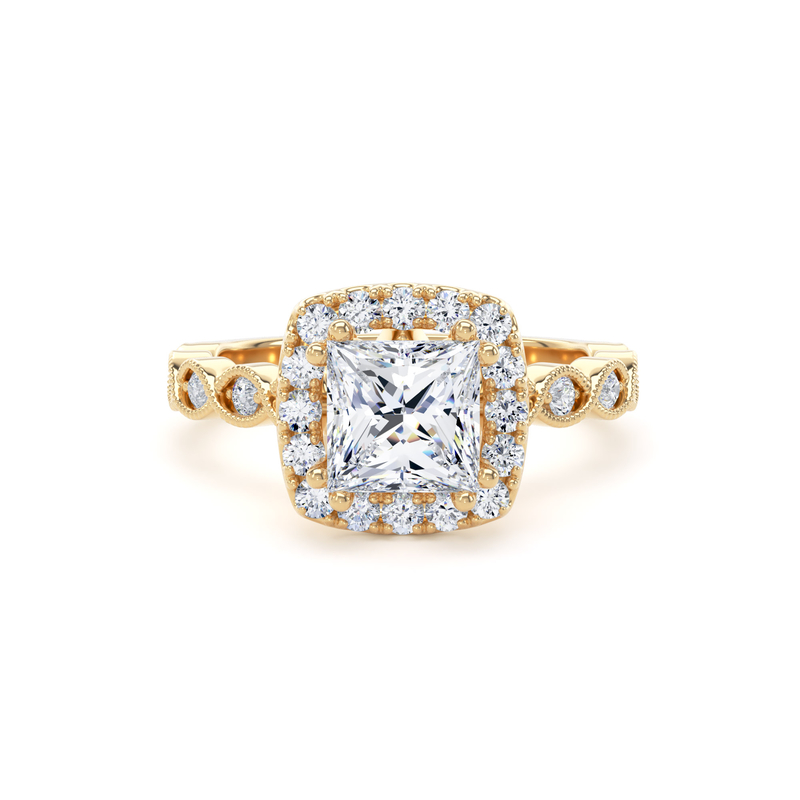 Embodying modern sophistication, the princess cut diamond is celebrated for its sharp, contemporary square shape and exceptional fire. Its brilliant, angular facets are masterfully cut to create an intense sparkle, offering a stunning alternative to the classic round cut. Choose a princess cut for a ring that delivers bold, geometric elegance with breathtaking brilliance.