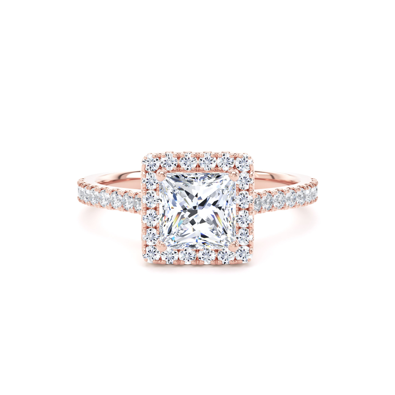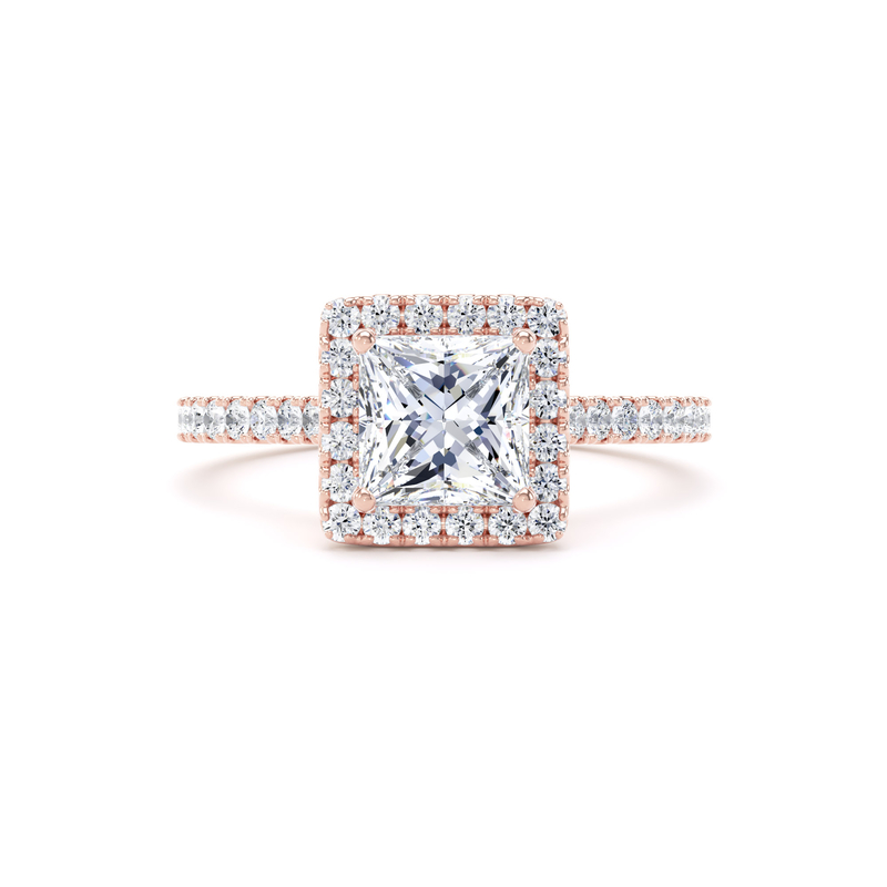 PHW01 Princess Cut Halo Engagement Ring in 18ct Rose Gold