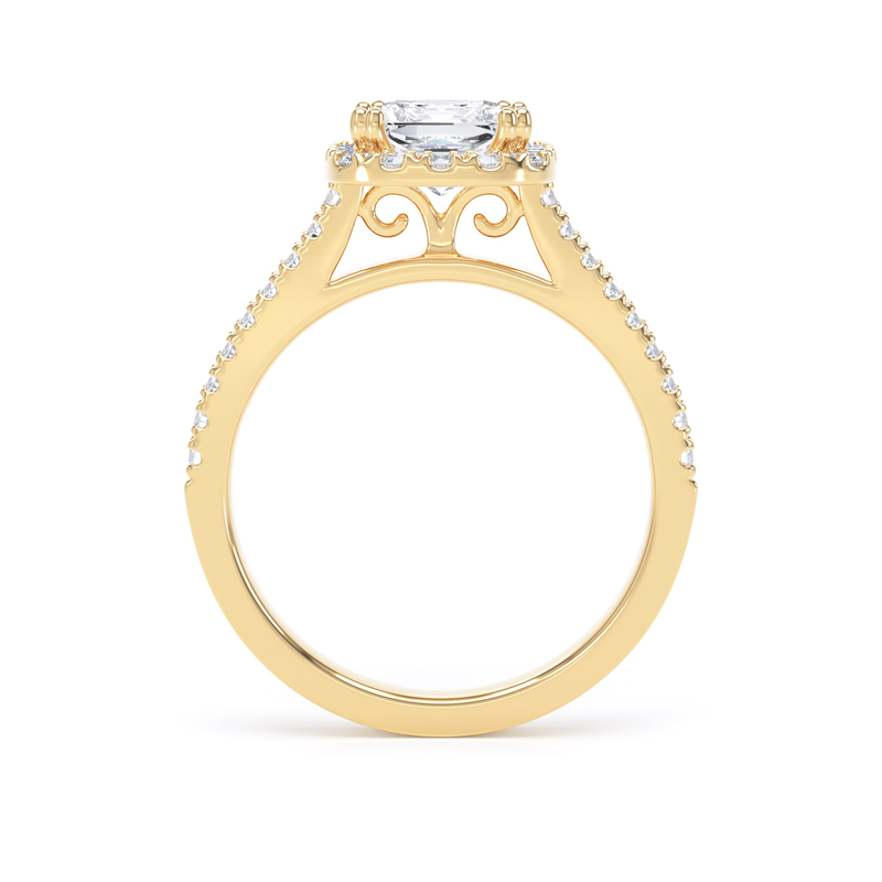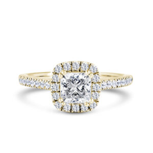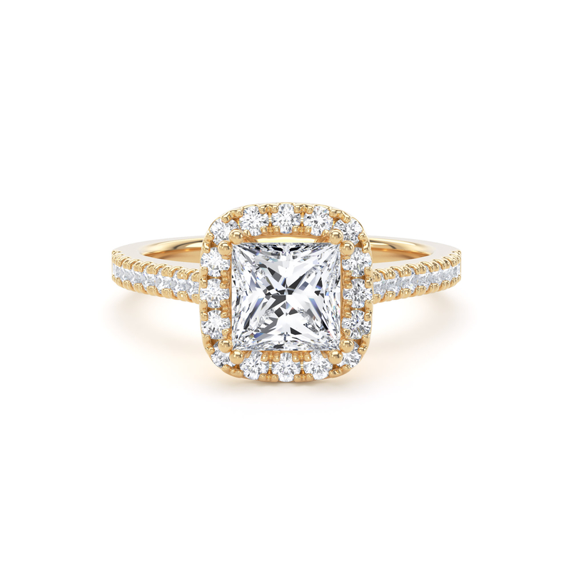 PHW02 Princess Cut Halo Engagement Ring in 18ct Yellow Gold