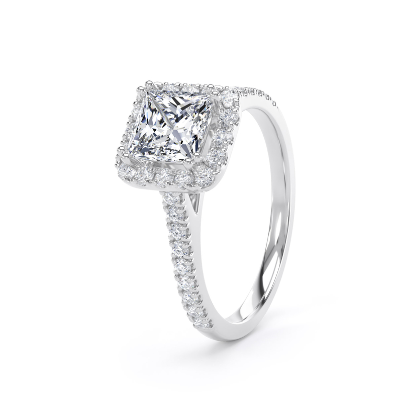 Embodying modern sophistication, the princess cut diamond is celebrated for its sharp, contemporary square shape and exceptional fire. Its brilliant, angular facets are masterfully cut to create an intense sparkle, offering a stunning alternative to the classic round cut. Choose a princess cut for a ring that delivers bold, geometric elegance with breathtaking brilliance.