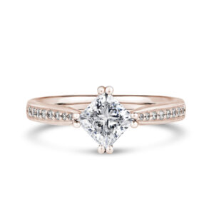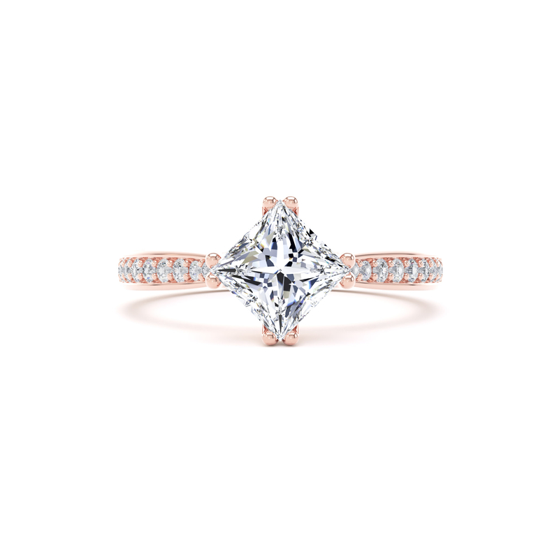 PSG03 Princess Cut Shoulder Set Engagement Ring in 18ct Rose Gold