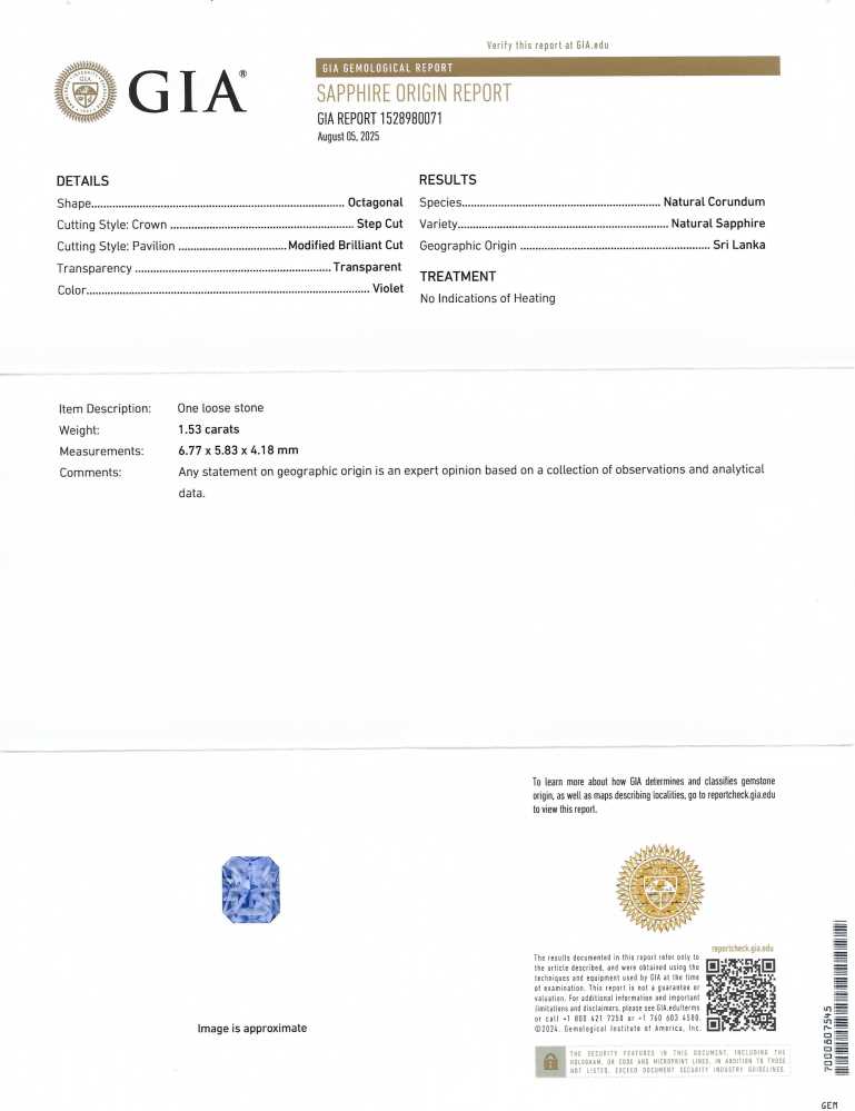 Purple Sapphire – Emerald Cut 1.5CT+ 1.53ct/st