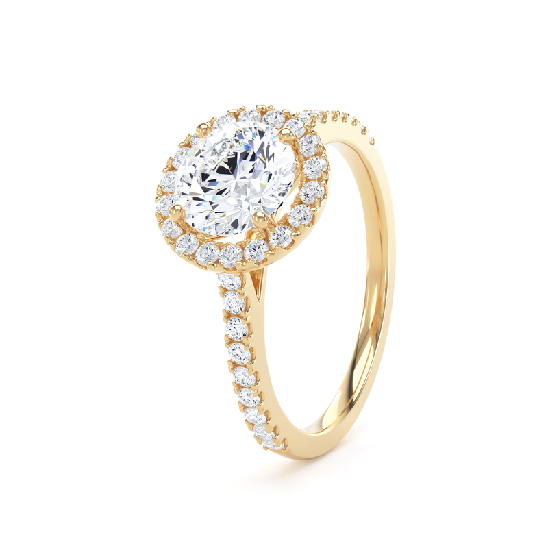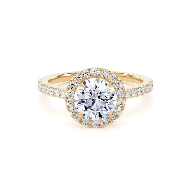 RHW01 Round Cut Halo Engagement Ring in 18ct Yellow Gold