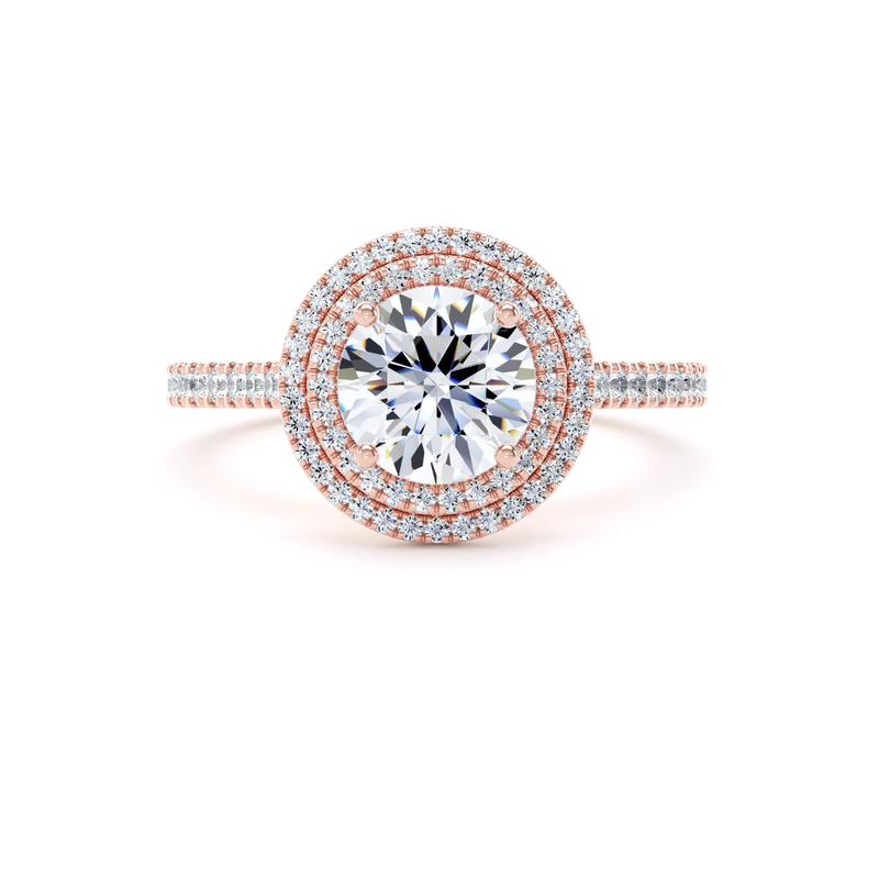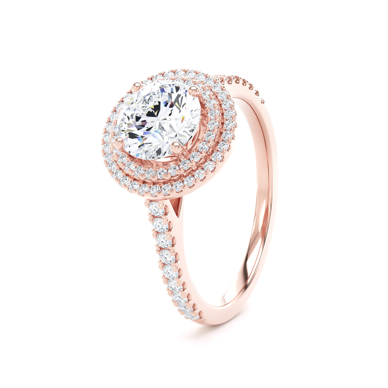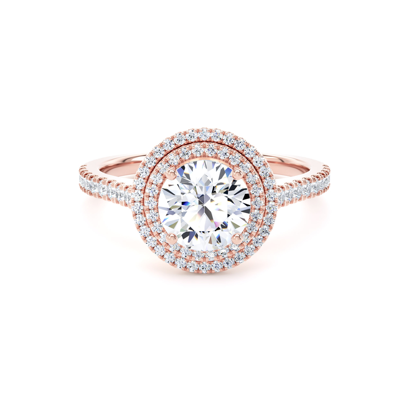 RHW02 Round Cut Halo Engagement Ring in 18ct Rose Gold
