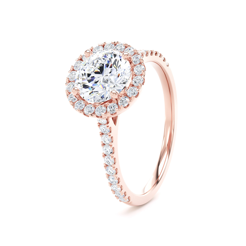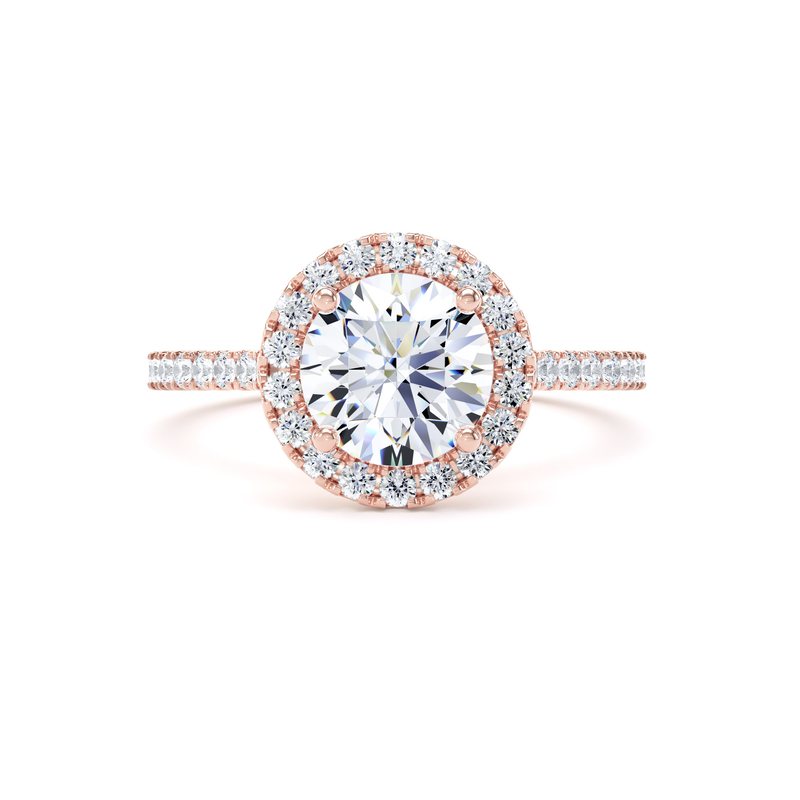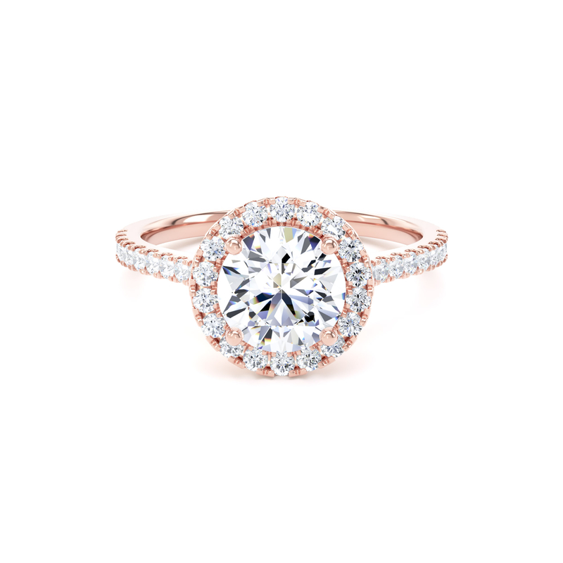 RHW03 Round Cut Halo Engagement Ring in 18ct Rose Gold