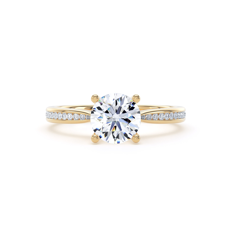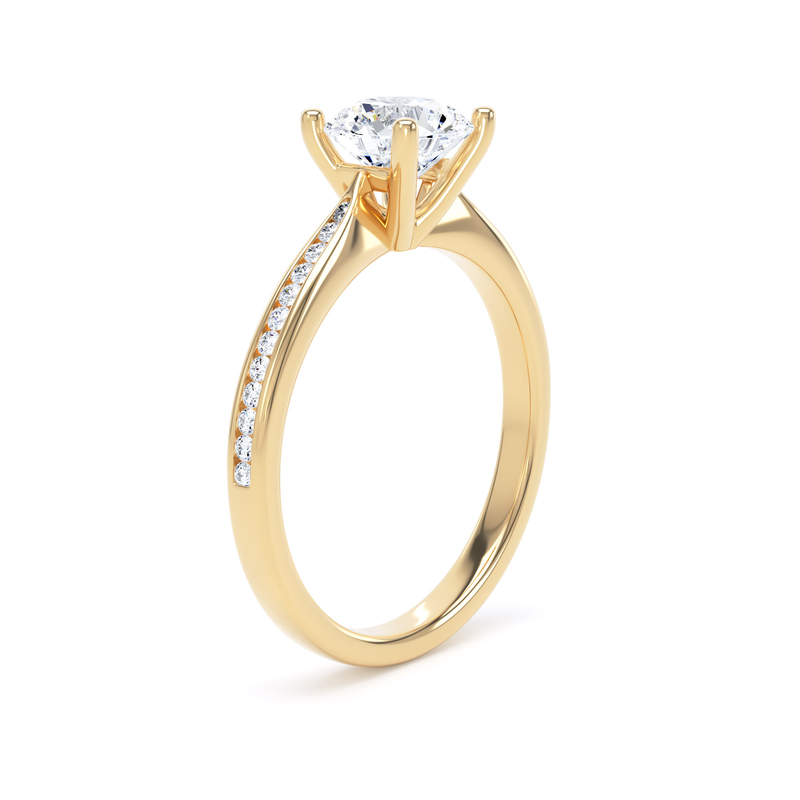 For an added layer of intricate sparkle, a shoulder set ring features a band gracefully adorned with smaller diamonds, leading the eye towards the magnificent centre stone. This elegant design choice enhances the overall brilliance of the ring, creating a continuous and captivating flow of light. Choose a shoulder set design for a timeless look that combines classic sophistication with an extra touch of glamou