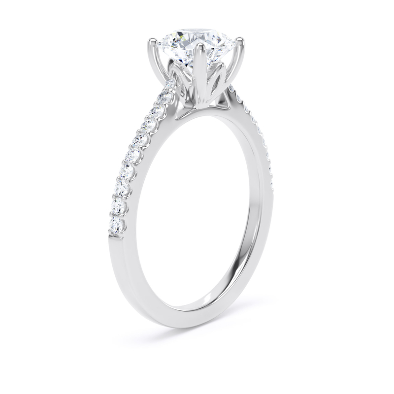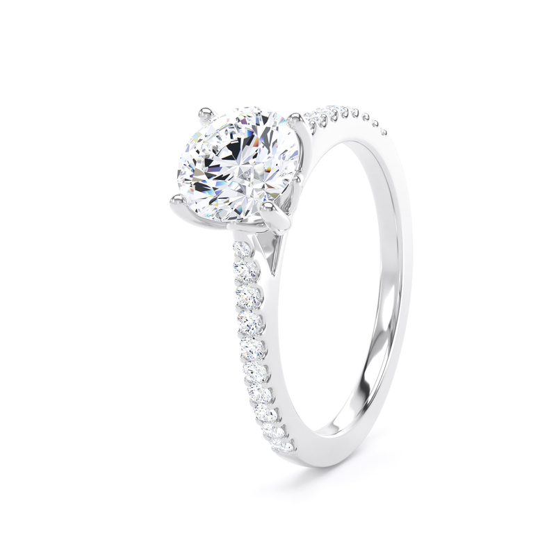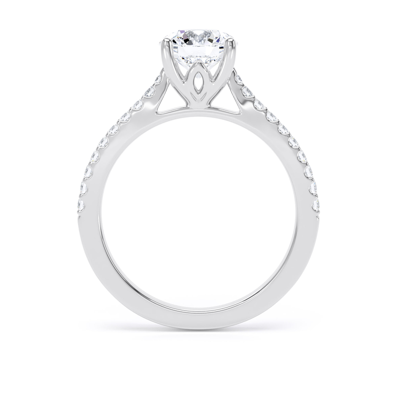 For an added layer of intricate sparkle, a shoulder set ring features a band gracefully adorned with smaller diamonds, leading the eye towards the magnificent centre stone. This elegant design choice enhances the overall brilliance of the ring, creating a continuous and captivating flow of light. Choose a shoulder set design for a timeless look that combines classic sophistication with an extra touch of glamou