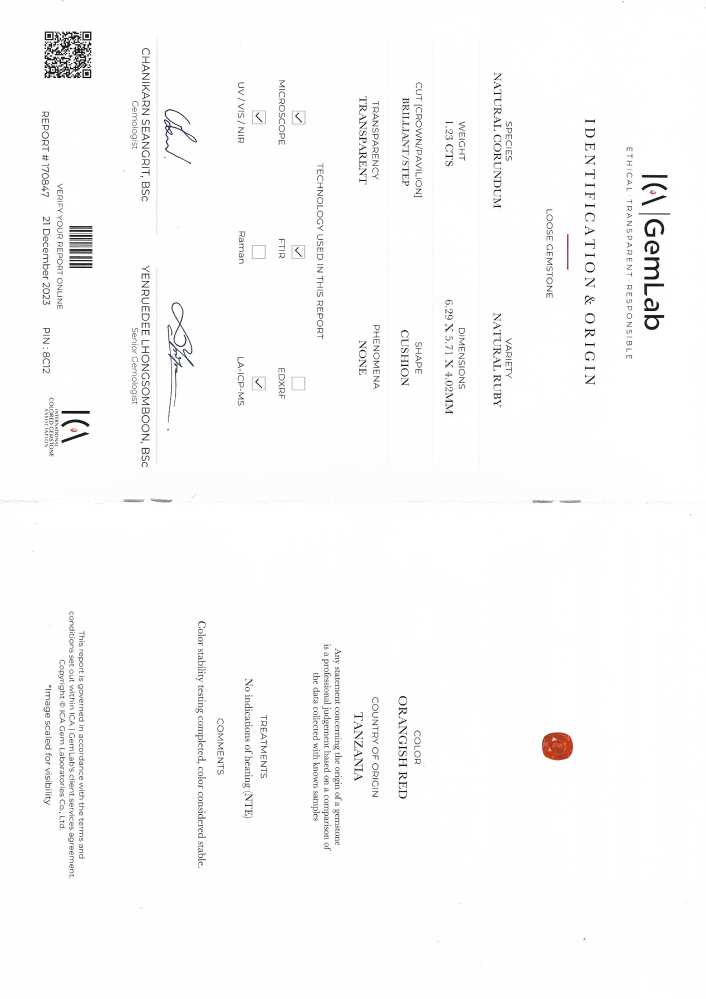 Ruby – Cushion 1CT+ 1.23ct/st