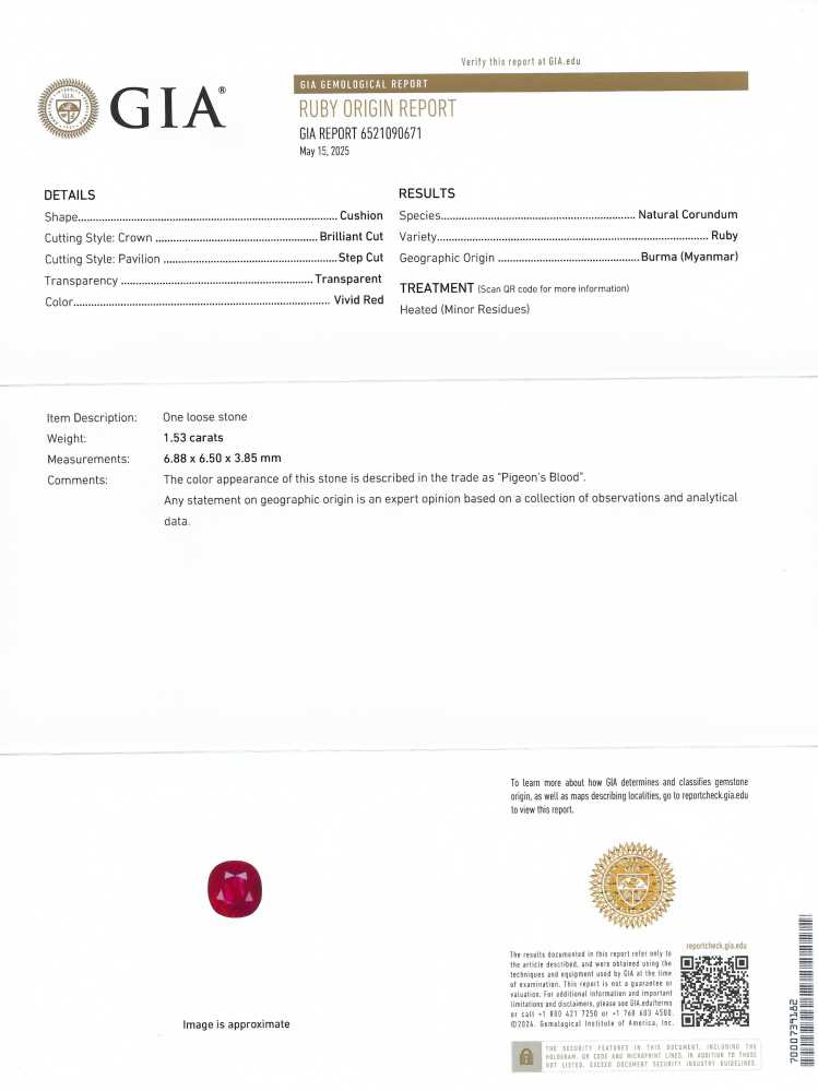 Ruby – Square (Antique) Cushion 1.5CT+ 1.53ct/st
