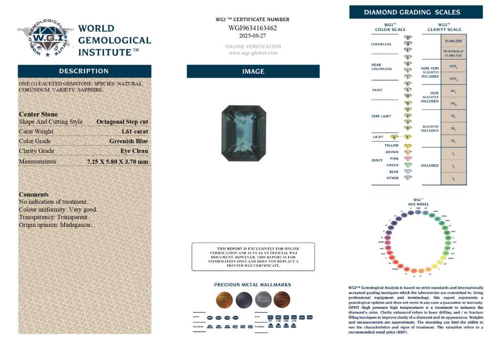 Teal Sapphire – Emerald Cut 1.5ct 1.61ct/st