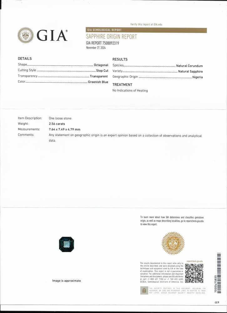 Teal Sapphire – Octagon Square (Asscher) 7.5mm 2.56ct/st