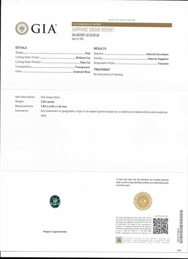Teal Sapphire – Oval 2CT+ 2.04ct/st