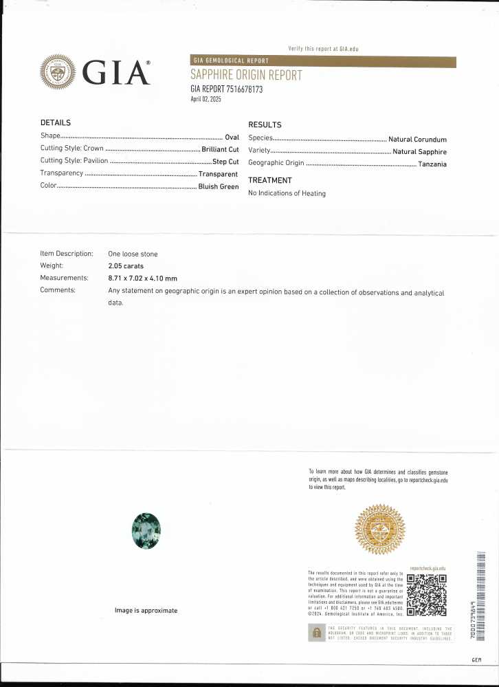 Teal Sapphire – Oval 2CT+ 2.05ct/st