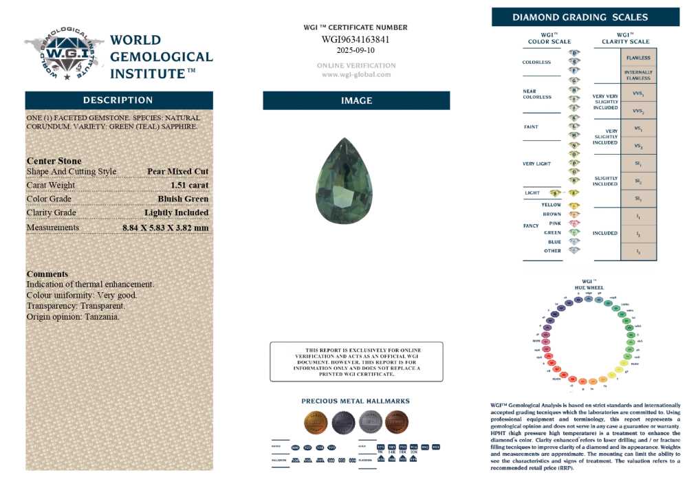 Teal Sapphire – Pear Shape 9×6 1.51ct/st