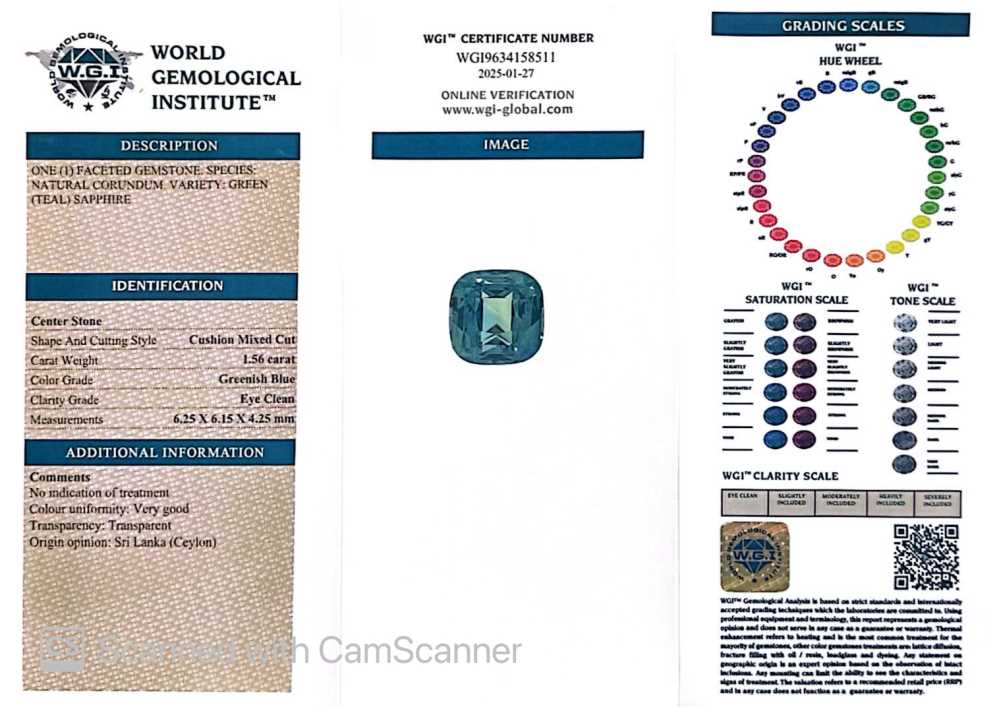 Teal Sapphire – Square (Antique) Cushion 6.25mm 1.56ct/st