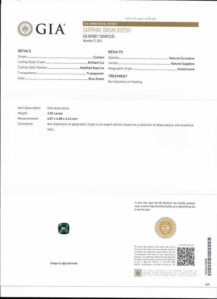 Teal Sapphire – Square (Antique) Cushion 6.75mm 2.02ct/st