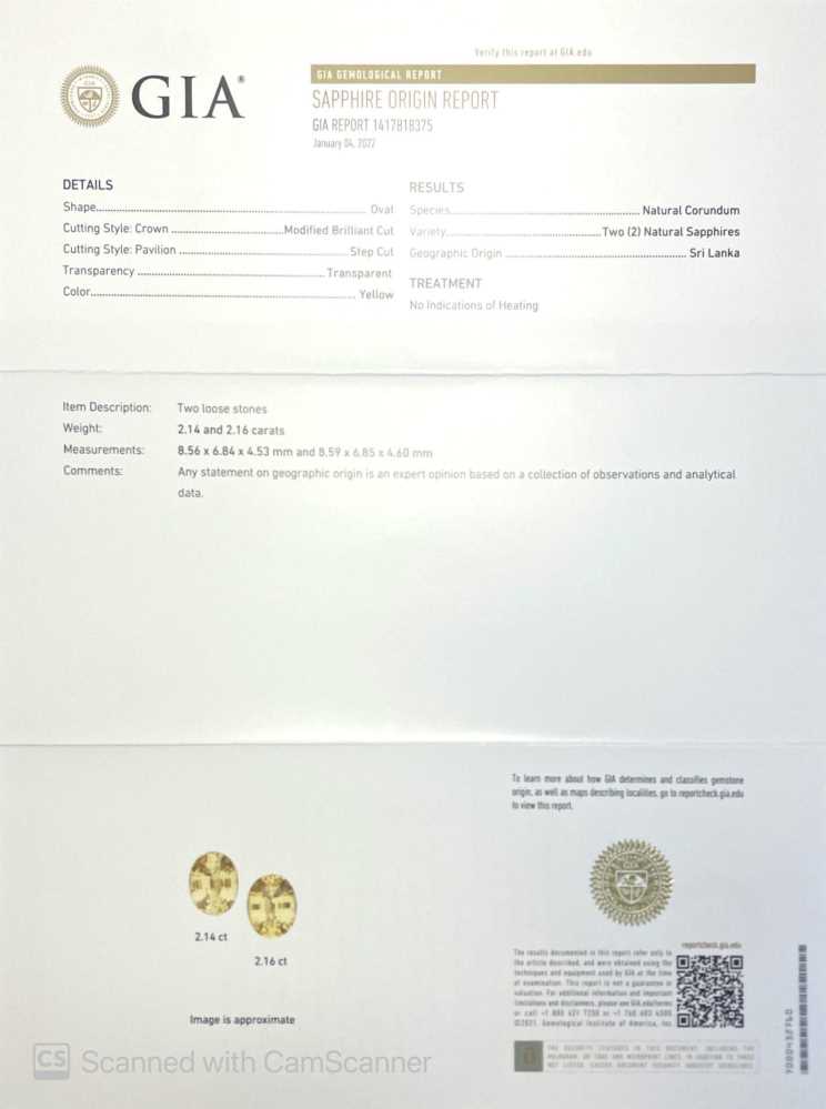 Yellow Sapphire – Oval 2CT+ 2.15ct/st