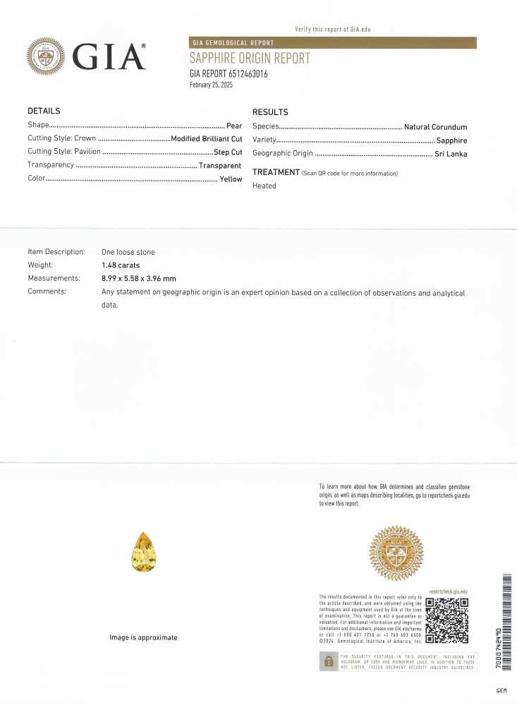 Yellow Sapphire – Pear Shape 9×6 1.48ct/st
