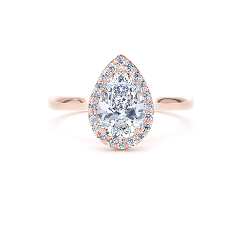 DHP01 Pear Cut Halo Engagement Ring in 18ct Rose Gold
