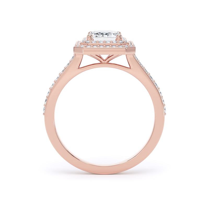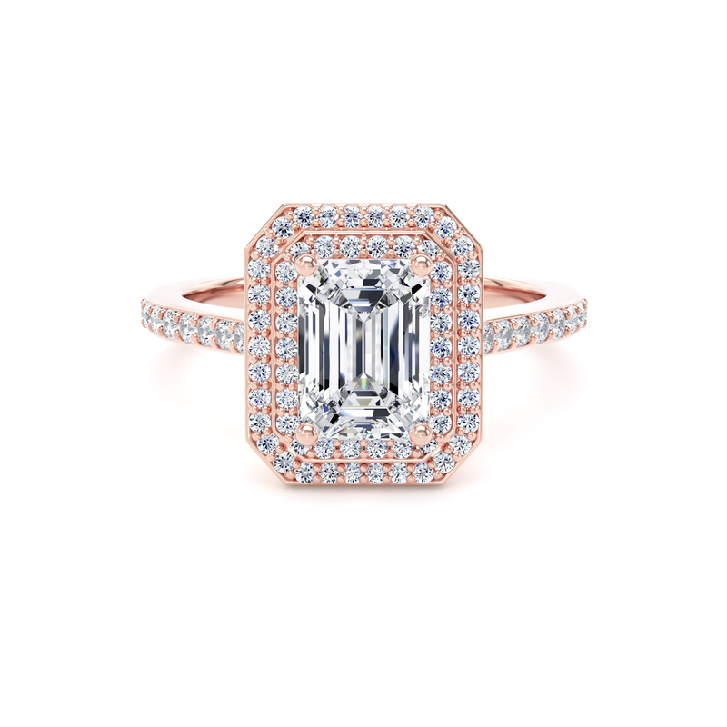EHW02 Emerald Cut Halo Engagement Ring in 18ct Rose Gold
