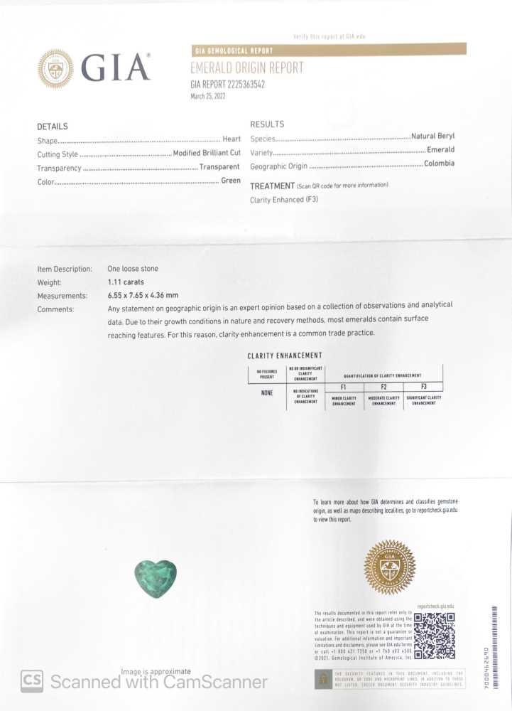 Emerald – Heart 1CT+ 1.11ct/st