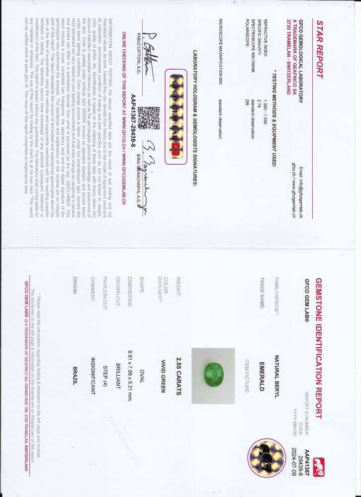 Emerald – Oval 10X8 2.55ct/st
