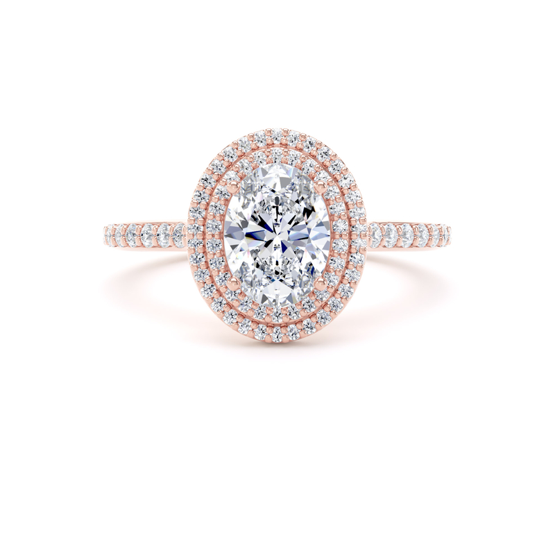 OHW02 Oval Cut Halo Engagement Ring in 18ct Rose Gold