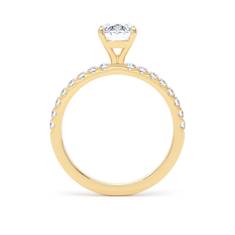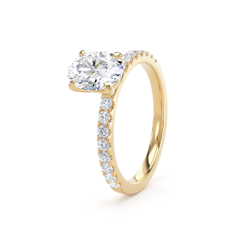 For an added layer of intricate sparkle, a shoulder set ring features a band gracefully adorned with smaller diamonds, leading the eye towards the magnificent centre stone. This elegant design choice enhances the overall brilliance of the ring, creating a continuous and captivating flow of light. Choose a shoulder set design for a timeless look that combines classic sophistication with an extra touch of glamou