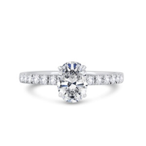 For an added layer of intricate sparkle, a shoulder set ring features a band gracefully adorned with smaller diamonds, leading the eye towards the magnificent centre stone. This elegant design choice enhances the overall brilliance of the ring, creating a continuous and captivating flow of light. Choose a shoulder set design for a timeless look that combines classic sophistication with an extra touch of glamou