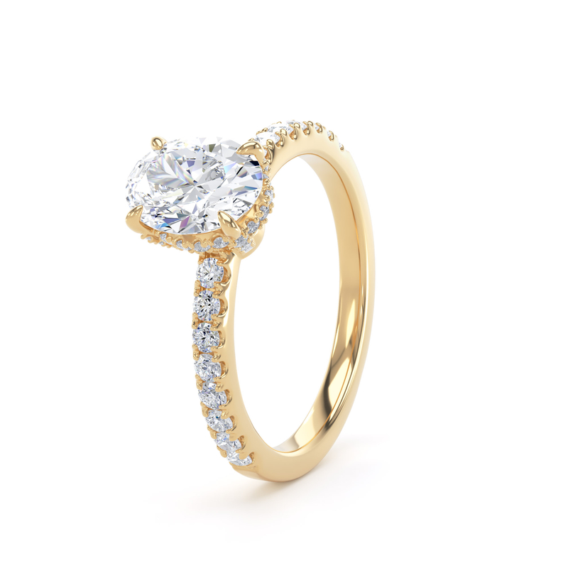 OSS01 Oval Cut Shoulder Set Engagement Ring in 18ct Yellow Gold